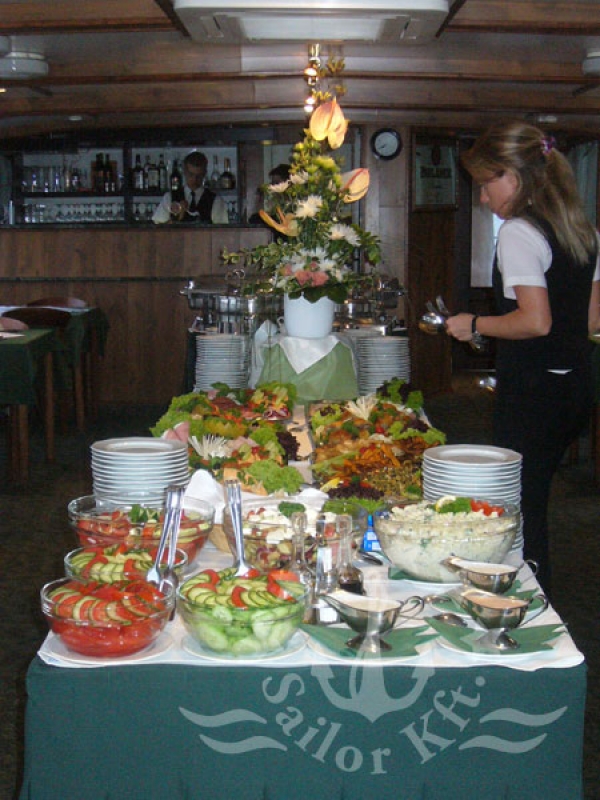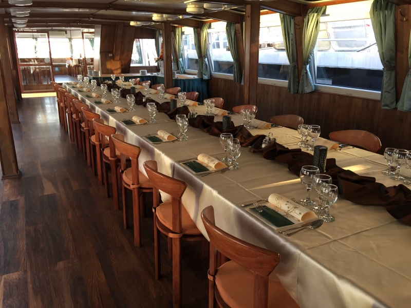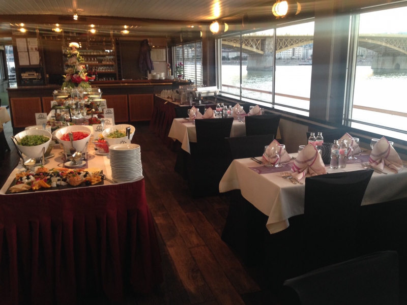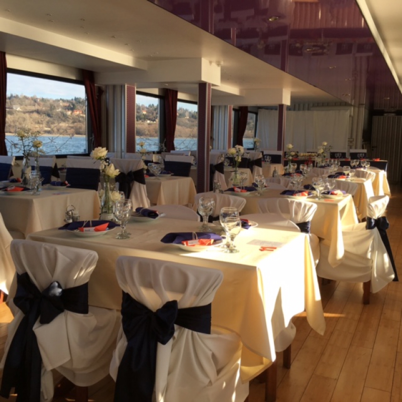 Vendégeik a felsőfedélzeten is helyet foglalhatnak, miközben fényképezőgépeikkel megörökítik Budapest látványosságait. A zárt alsó részen pedig lehetőség van az ebéd vagy vacsora elfogyasztására. Hajónk légkondicionálóval, fűtéssel, jó minőségű - teljes fedélzeten hallható - hangosítással és CD-lejátszóval rendelkezik.